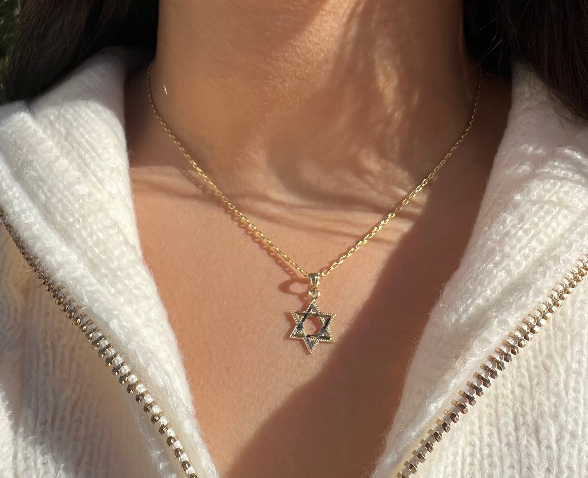 A classic Magen David necklace crafted in 14KT solid gold, offering timeless elegance and spiritual significance.
