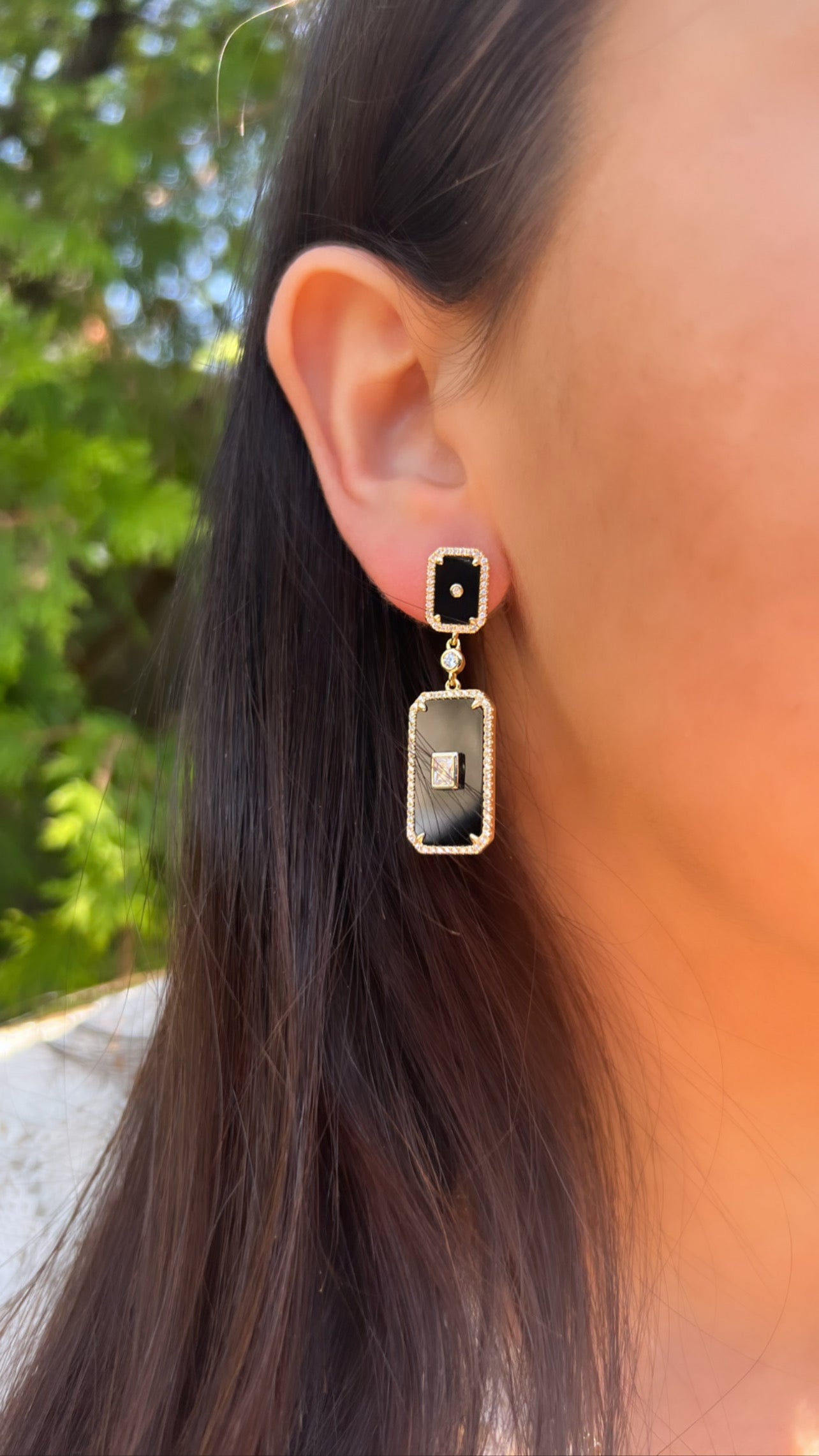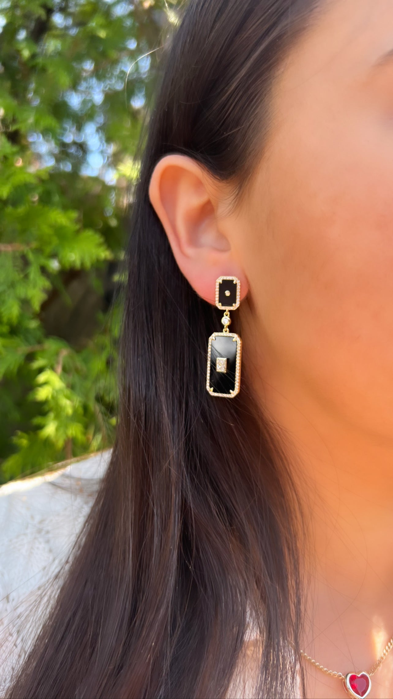 The Vintage Vibed Modern Black Onyx Earrings feature striking black onyx stones set in a vintage-inspired design. These earrings bring a sophisticated and bold look, ideal for both day and evening wear.