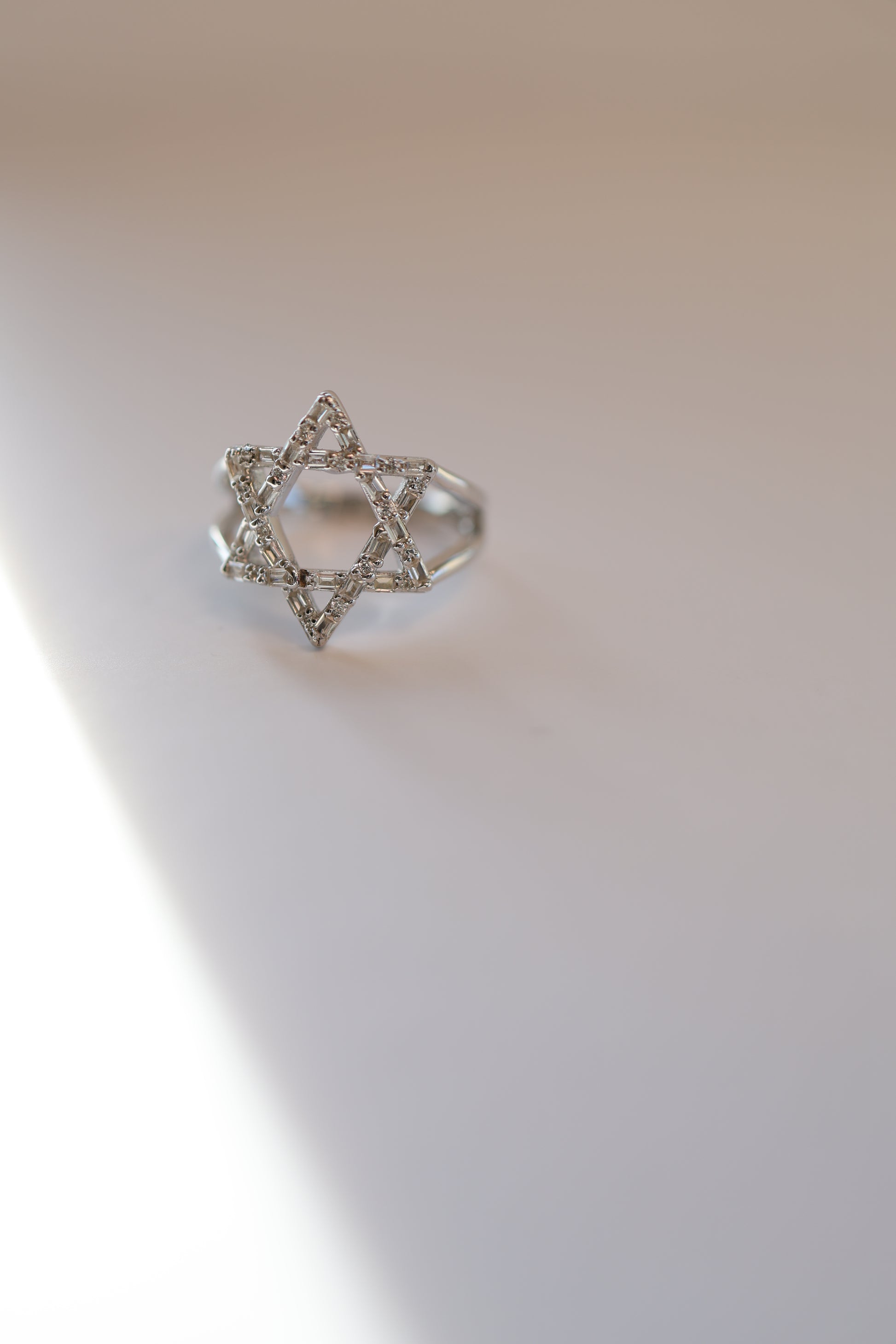 Sparkling cubic zirconia stones enhance the Magen David star design