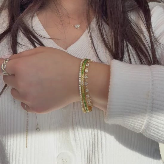 The Ombre Tennis Bracelet features a stunning design with a gradient effect, showcasing cubic zirconia stones in an Ombre arrangement. Set in durable sterling silver, this bracelet offers a modern and elegant look, perfect for adding a touch of sparkle and sophistication to any outfit.