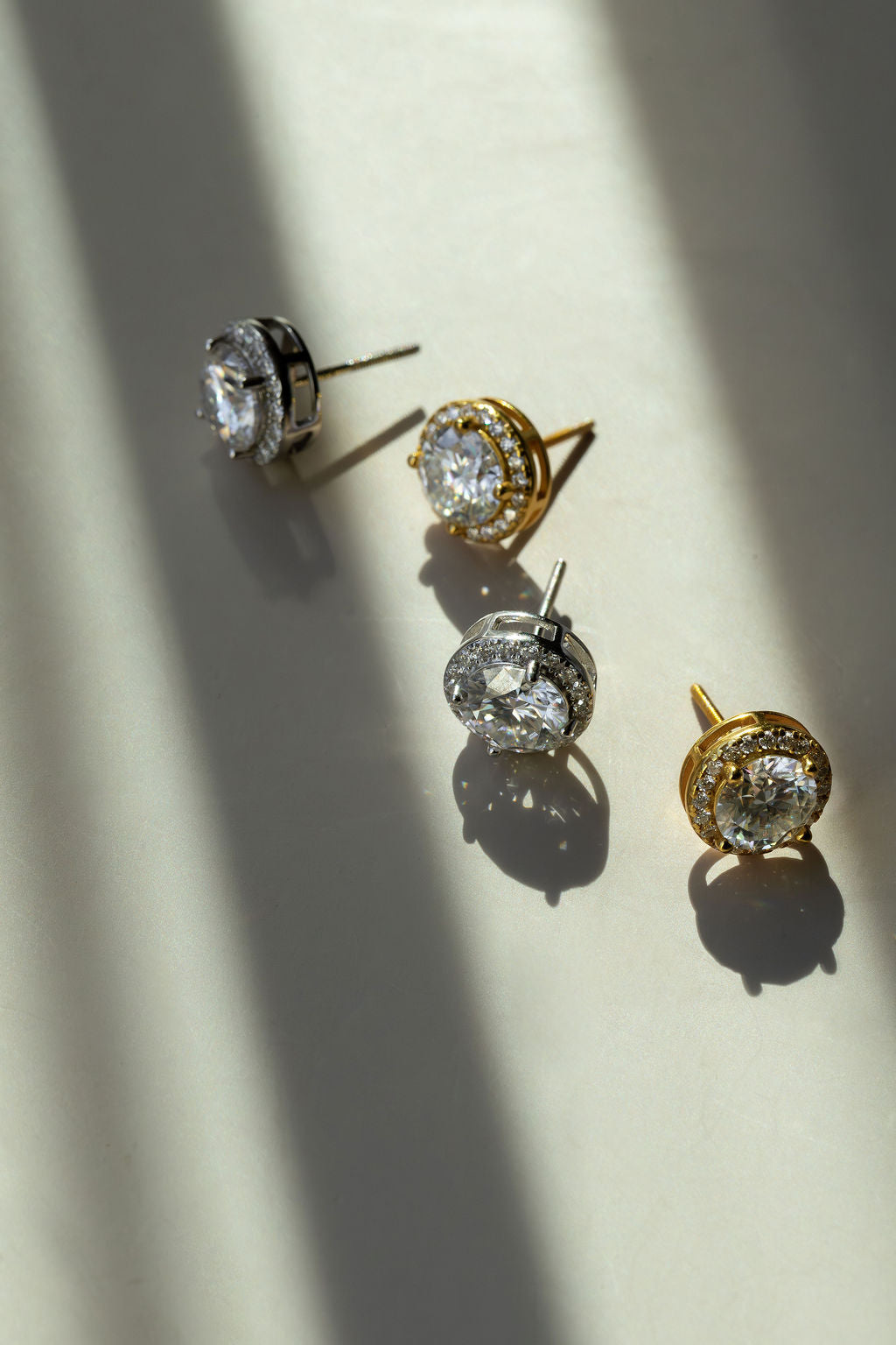 These Halo Round Lab Diamond Sterling Silver Stud Earrings combine timeless sparkle with modern craftsmanship. Featuring VVS1D clarity lab-grown diamonds surrounded by a radiant halo, they deliver a bold yet elegant look. The secure screw backs ensure lasting comfort and wearability, making them an everyday essential or the perfect gift.