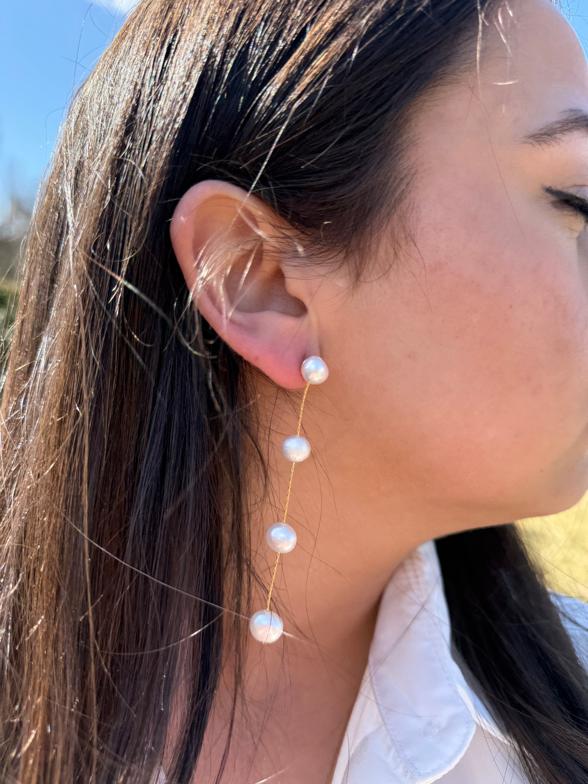 The Pearl x Elegance Earrings feature classic freshwater pearls surrounded by sparkling cubic zirconia stones. These elegant earrings are perfect for adding a touch of luxury and timeless sophistication to any look.
