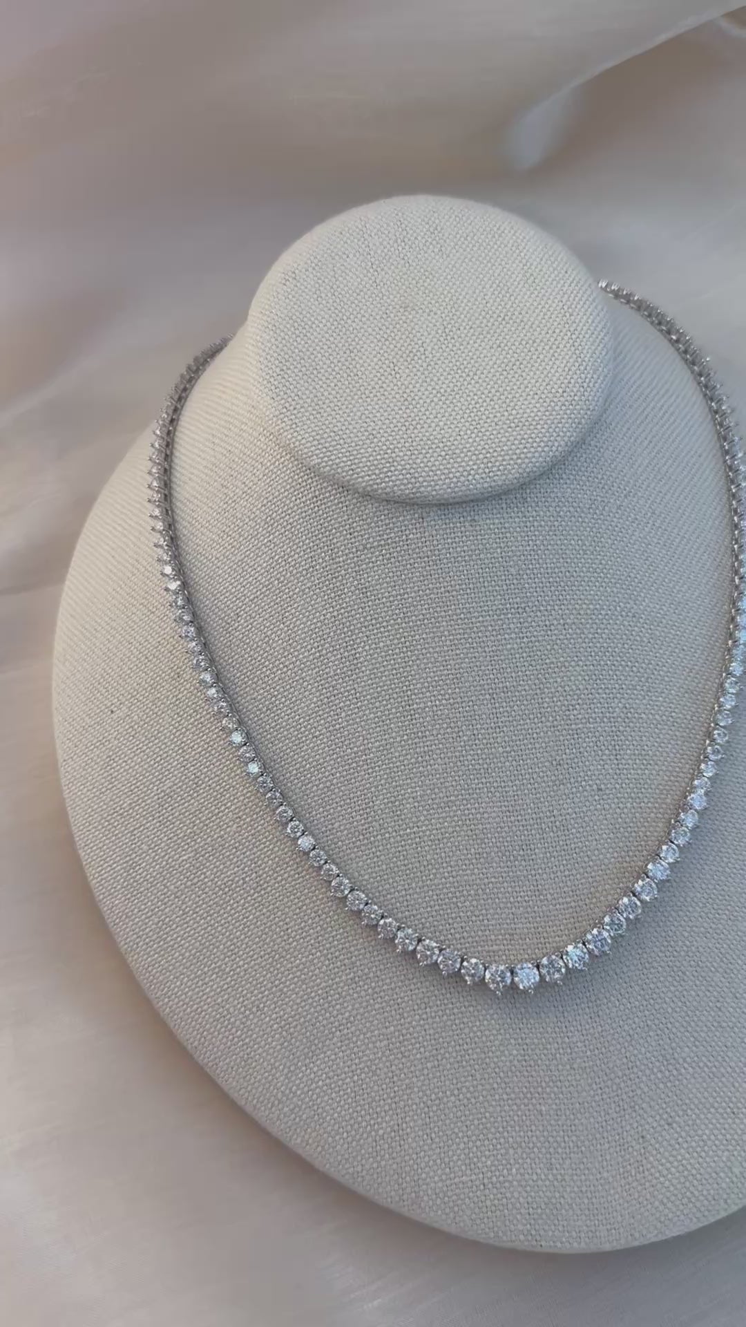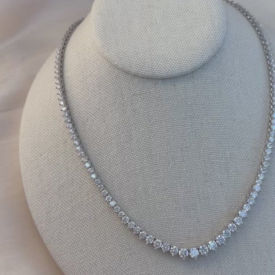This Sterling Silver Lab Diamond Graduated Tennis Necklace is the ultimate statement of timeless elegance. Featuring VVS1-D clarity lab-grown diamonds that gradually increase in brilliance, the necklace is designed for maximum sparkle and sophistication. Perfect for formal occasions or elevating everyday style, this piece is available in multiple lengths for a tailored fit.